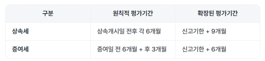 원칙적인 평가기간을 벗어나더라도 다음의 경우에는 시가로 인정받을 수 있습니다: