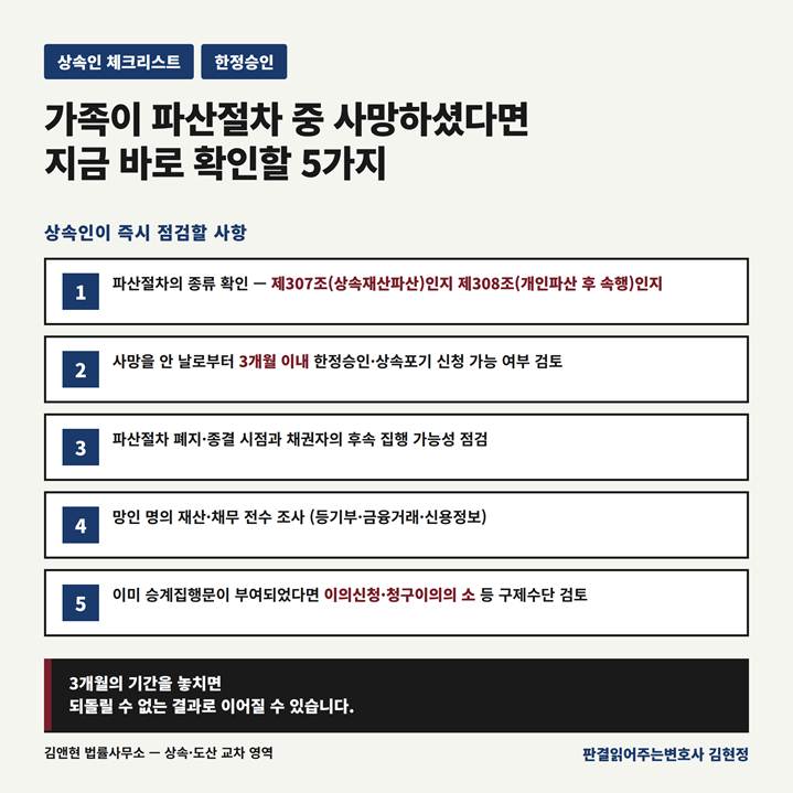[도식 3] 가족이 파산절차 중 사망하셨다면 지금 바로 확인할 5가지